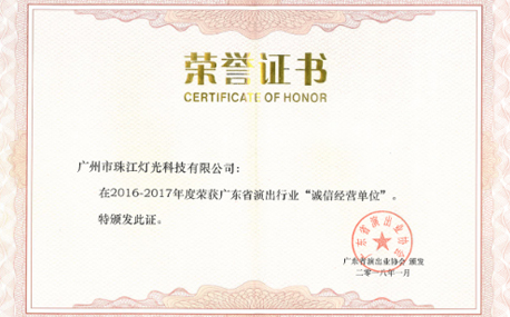 喜訊!珠江燈光再次榮獲“誠(chéng)信經(jīng)營(yíng)單位”稱號(hào)