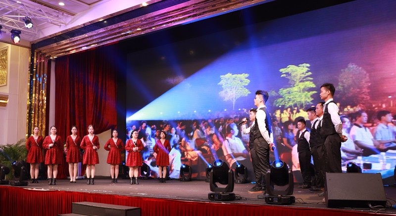 繼表彰之后,公司董事、一眾高管帶領在場所有人員,共舉斟滿祝福的酒杯,盛情依依、笑語盈盈,回望昨日的所有,為開啟輝煌而美好的2020年祝酒。財神派發紅包,晚宴正式開始。